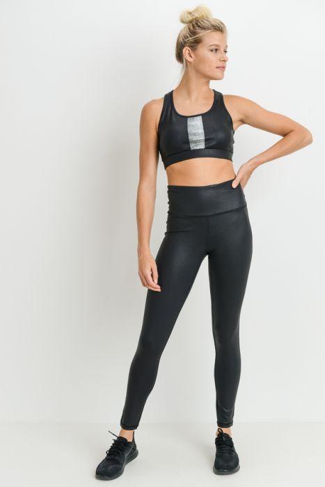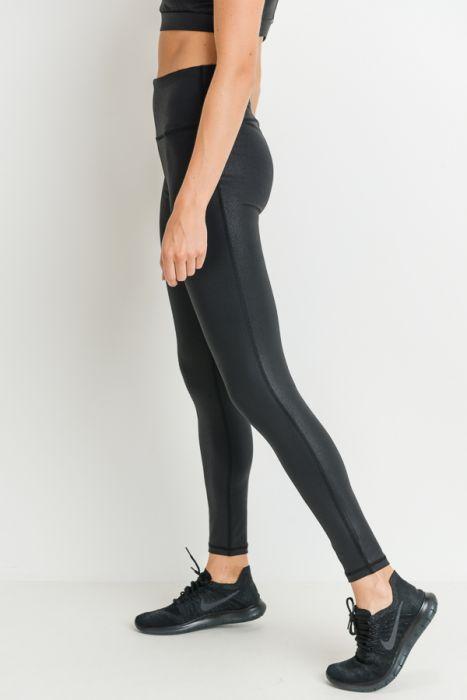 This stylish and eye-catching pair of leggings is crafted out of stretch polyester-spandex fabric decorated with scale pattern made of foil. The discreet slot on the front waist band is perfect for your phone or other necessities.